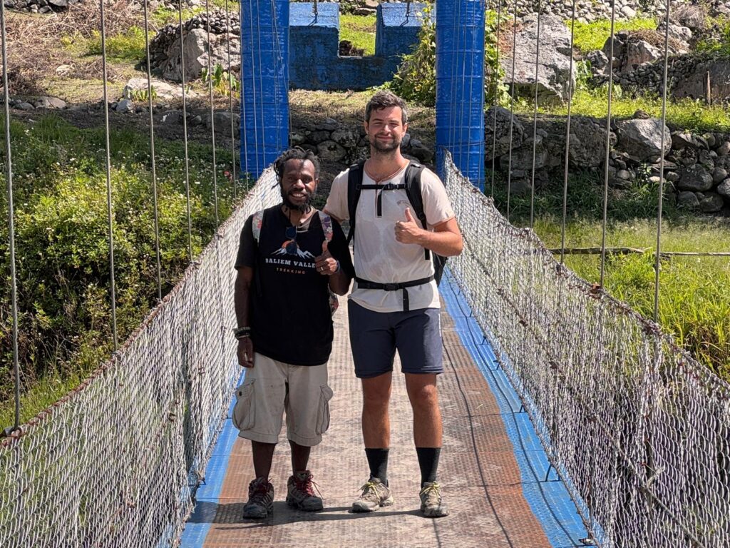 Pēc brokastīm dosieties 35 minūšu braucienā uz Sogokmo ciematu, kur sāksies aptuveni 4-5 stundu ilgs pārgājiens Baliemas ielejas dienvidos. Soļosiet cauri Dani cilts iekoptajiem saldo kartupeļu dārziem, baudot brīnišķīgus dabas skatus. Adrenalīna devu sniegs Baliemas upes šķērsošana pa šūpojošiem piekaramajiem tiltiem, lai sasniegtu Asotipo ciematu un Kurima reģionu. Pārgājiena laikā sastapsiet vietējos iedzīvotājus tradicionālajos tērpos un ieturēsiet piknika pusdienas. Pēcpusdienā atgriezīsieties Vamenā, kur baudīsiet vakariņas restorānā "Sinabung Jaya", bet nakšņosiet "Baliem Pilamo" viesnīcā.